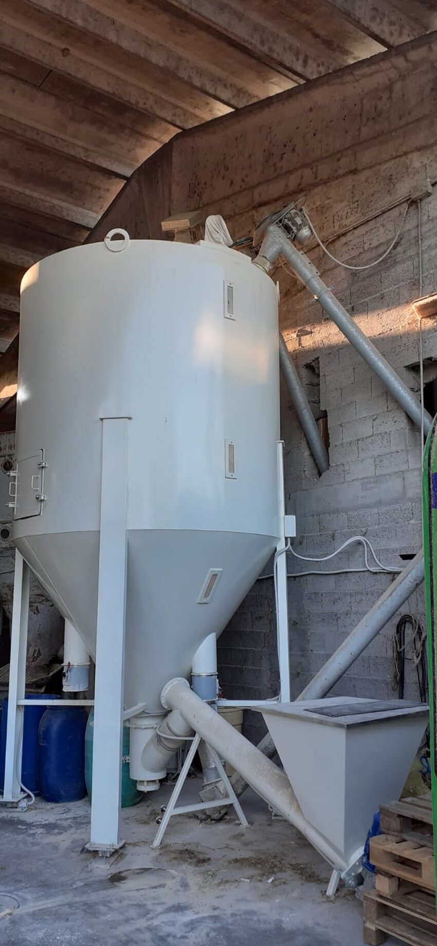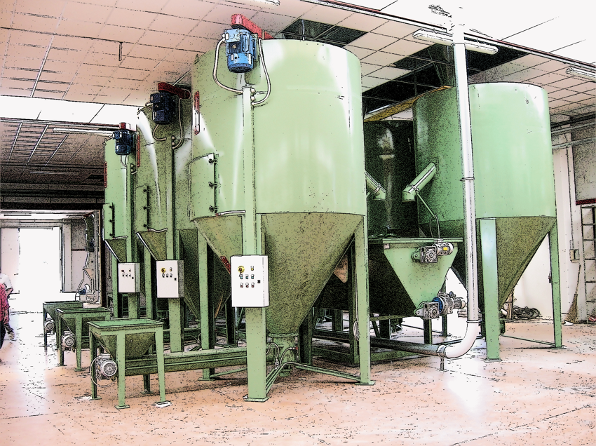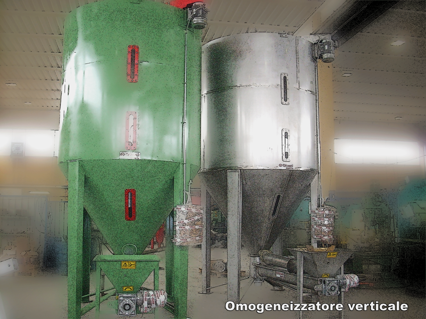 Macchine Adatte a miscelare prodotti in granuli e polverunenti, dalla plastica, gomma,  settore chimico farmaceutico, integratori per animale e nelle industrie in genere. Strutturati per il carico tramite coclea orizzontale dal basso, oppure tramite ventilazione forzata dall'alto. Le macchine sono dotate di tramoggia convogliatrice, scrico laterale elettropneumatico, sportello di pulizia posizionato sul fondo, apertura totale del tubo convogliatore, micro di sicurezza, passo d'uomo posizionato sul cilindro.