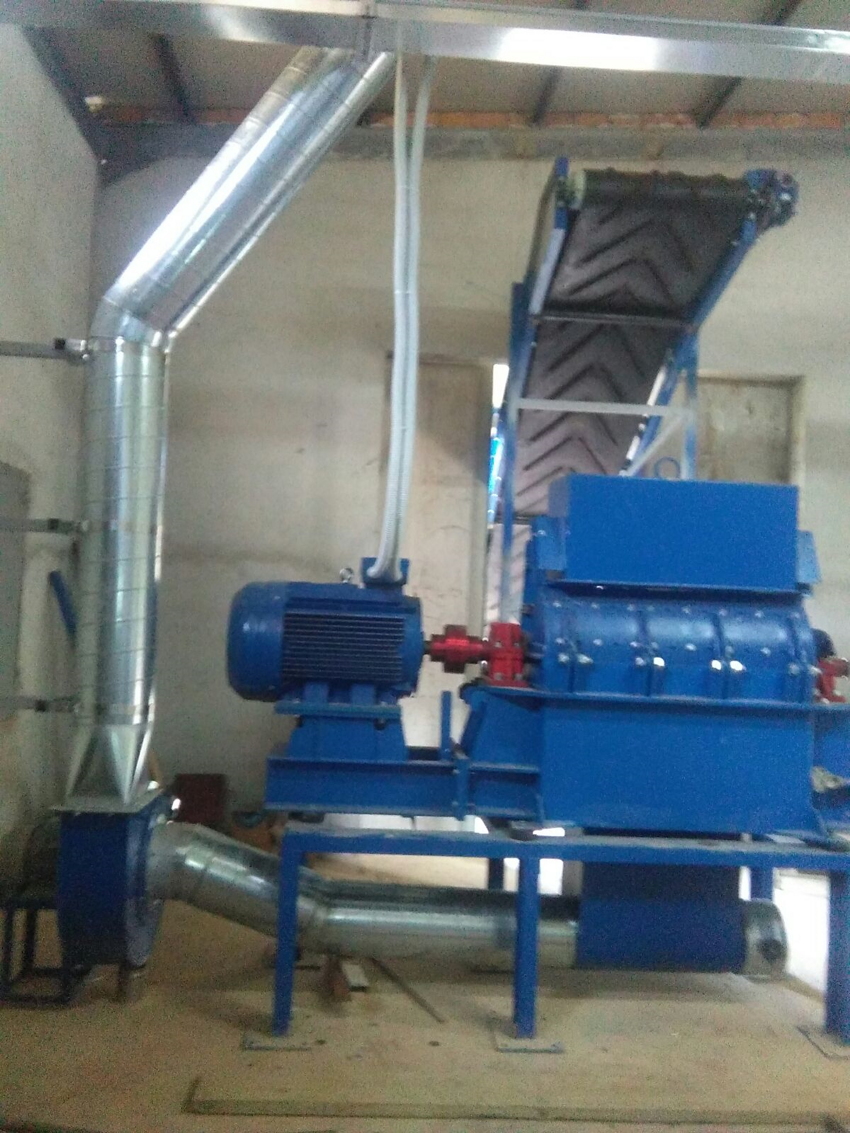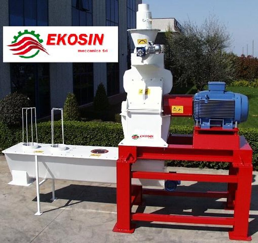 Mulino a martelli tipo industriale, predisposto per aspirazione in alta pressione E BASSA PRESSIONE. Esecuzione in acciaio al carbonio con rivestimento esterno antiruggine Costituito da: tramoggia di carico per alimentazione a gravità. Alimentatore/dosatore elicoidale con motoriduttore. piano magnetico di trattamento PER eventuali corpi estranei. blocco macinante in lamiera di acciaio ad elevato spessore. girante portamartelli con albero adeguamente dimensionato ruotante su DUE cuscinetti a sfere, alloggiati in due supporti sulle fiancate. martelli in acciaio cementato e temperato ad elevato resistenza all’usura, utilizzabili su quattro facciate. nr 5 griglie di dotazione standard microinterruttori di sicurezza basamento in profilati di sezione e resistenza adeguata per l’alloggiamento del mulino con il motore elettrico, piastre d’appoggio a terra con tasselli anti-vibranti MOTORE ELETTRICO DI COMANDO DI MARCA PRIMARIA completo di giunto elastico d’accoppiamento tra mulino e motore elettrico con carter di protezione Costituito da: motoriduttore elettrico per comando dell’apertura e chiusura della paratoia nr 2 finecorsa di sicurezza con attacchi.